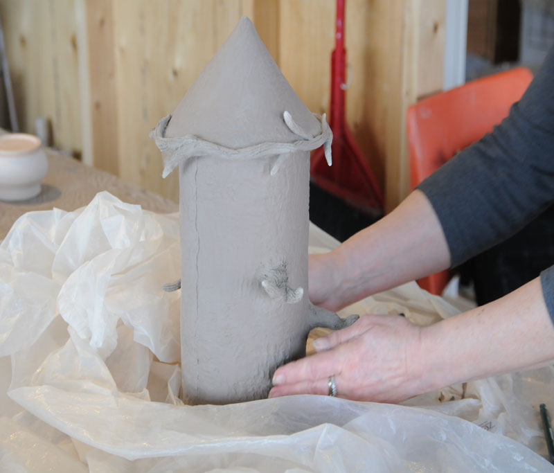 Margrit’s experience with hand building developed after a hand injury made wheel throwing too physically trying. She encouraged us to make hand built pottery that didn’t try to replicate wheel thrown pottery, but celebrated its hand built attributes.