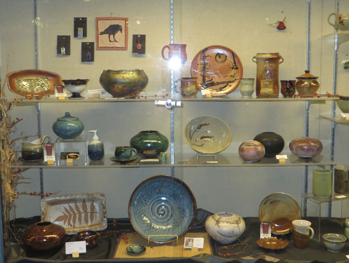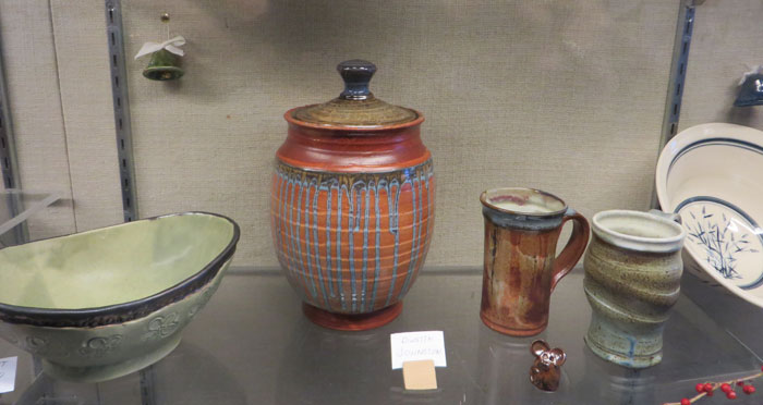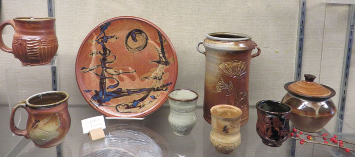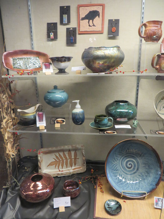 We have a display at the Peterborough Library every year and this year’s display is gorgeous. It is the work of the participants of our Christmas Sale and is a sneak peek of what some of the potters/artists will be selling this year. A big thank you to Liz Sine, George Stewart and Lillian Forester, who organized the display, as it looks great!