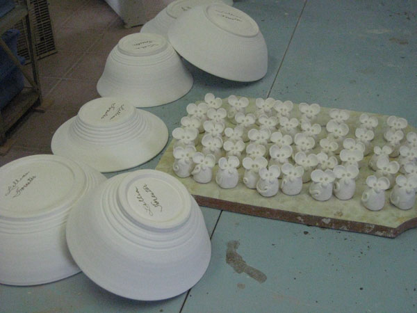 Lillian Forester is famous for her cheese mice. The perfect little friends to accompany your cheese tray! These cute little fellows won’t even nibble! Like the rest of us, Lillian is getting ready for the show, and has her kiln loaded and ready to go. Check out her beautiful work, before it is even glazed!