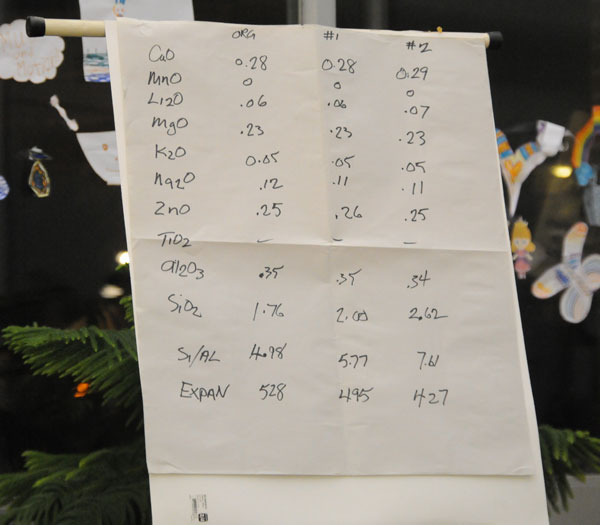 On October 21st, our speaker for the evening was Ron Roy, the guru of cone 6 glazes. The talk was very interesting and we had been asked to send him any glazes that we were having issues with. So a few guild members did this and he first went through the components of glazes and how reducing the amount of one element will affect the glaze in a certain way. For example, one of the issues a potter had, was that her glaze should be shinier, so he did an analysis of the glaze and came up with a new configuration. Another said that their glaze wouldn’t stay “stirred” long enough to dip her pots, and he recommended mixing a solution 2 tbsp of Epsom Salts in a cup of water and adding 3 drops to the glaze. Mix it up and leave it half an hour to see how it mixed. If it was still too dense, try again and leave it. Continue until the glaze kept it’s mix better.